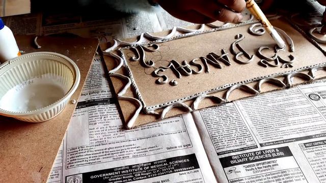 Traditional Lippan Art Name plate. learn How to make traditional Lippan Art Name Plate,or mud and mirror art at home.