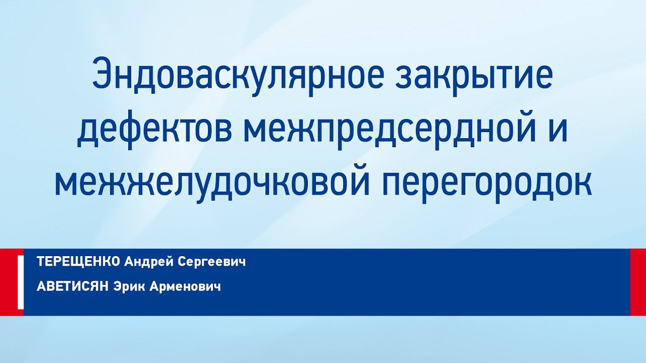 "Московская школа кардиологов. Инвазивная кардиология " "Эндоваскулярные вмешательства у кардиологических больных" "Эндоваскулярное закрытие дефектов межпредсердной и межжелудочковой перегородок" Аветисян Эрик Арменович врач-кардиолог отдела неотложной кардиологии «НМИЦ кардиологии» Минздрава России Терещенко Андрей Сергеевич научный сотрудник отдела рентгенэндоваскулярных методов диагностики и лечения НИИ клинической кардиологии им. А.Л.Мясникова «НМИЦ кардиологии» Минздрава России, к.м.н."