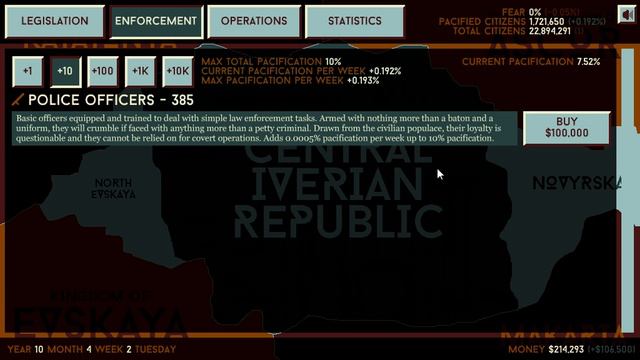 Hi guys and welcome to my mindless attempt to overthrow democracy in the Central Iverian Republic...welcome to deep state a waiting strategy game on newgrounds: