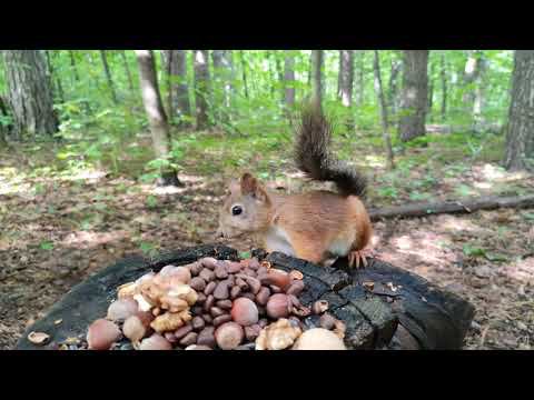 Белка спрятала орех и вернулась погрызть кедряшки