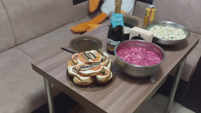 Бутерброды и тазики салата