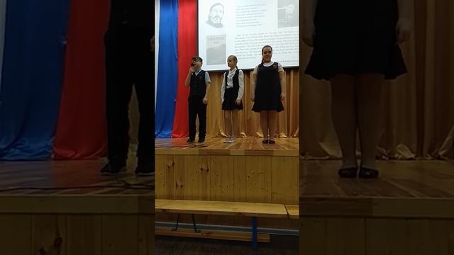 Конкурс чтецов в рамках школьной Недели иностранных языков. Ребята читают поэтические произведения В. Шекспира, А. С. Пушкина, Р. Бернса, Р. Стивенсона на русском и английском языках.
