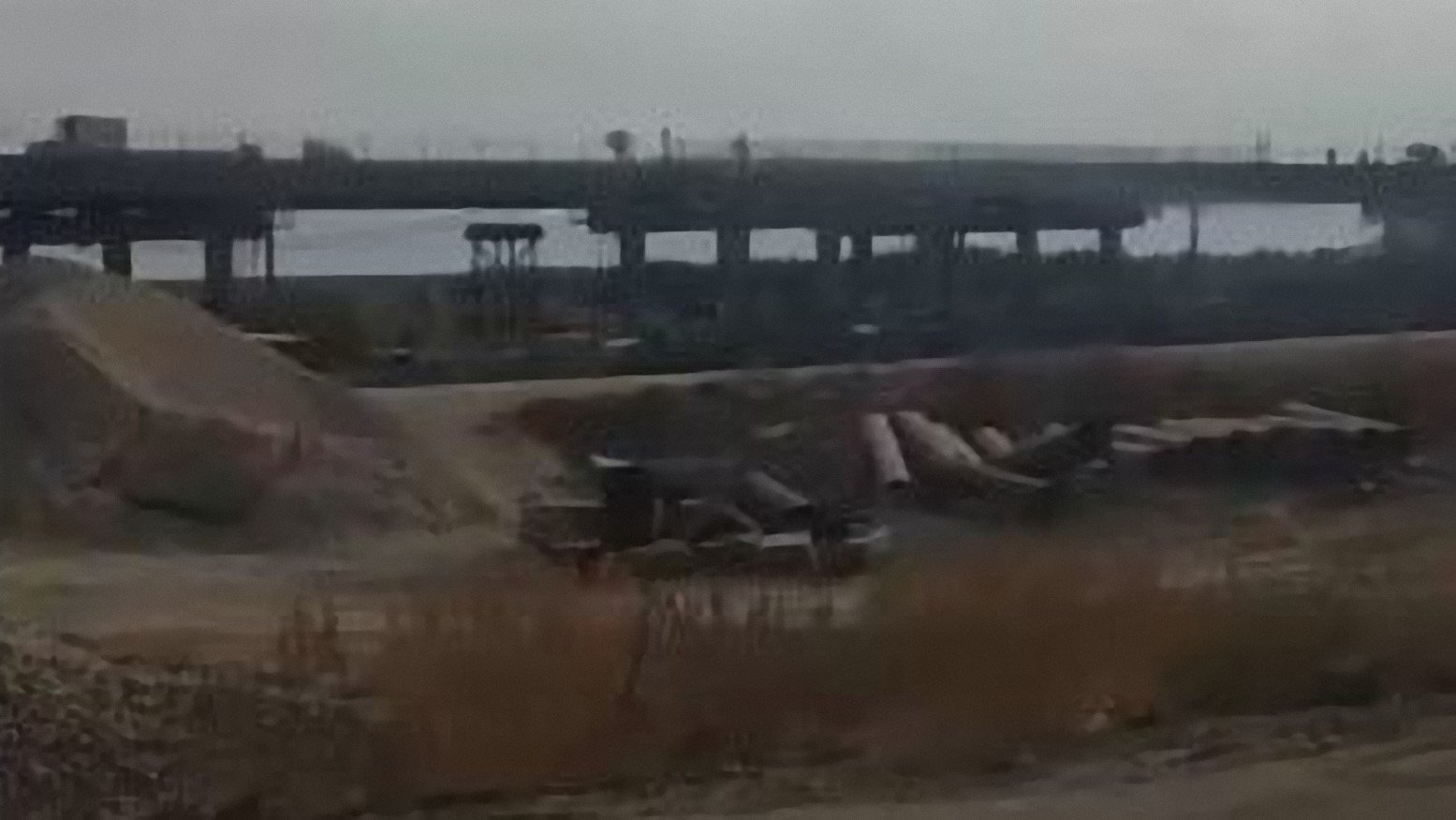 Сняли на видео, когда ехали в автобусе, в сентябре 2020 года строительство путепровода у села Синодское Саратовской области