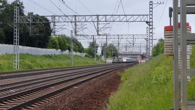 9 июня 2021 года в 6:58 перегон Москва-товарная - Ховрино Октябрьская железная дорога double Sapsan EVS1-0хх+0хх to St. Petersburg train No. 754 June 9, 2022 at 6:58 am haul Moscow-tovarnaya - Khovrino Oktyabrskaya railway
