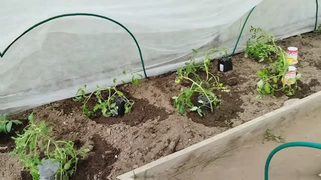 Томаты в теплице на второй день после высадки рассады.