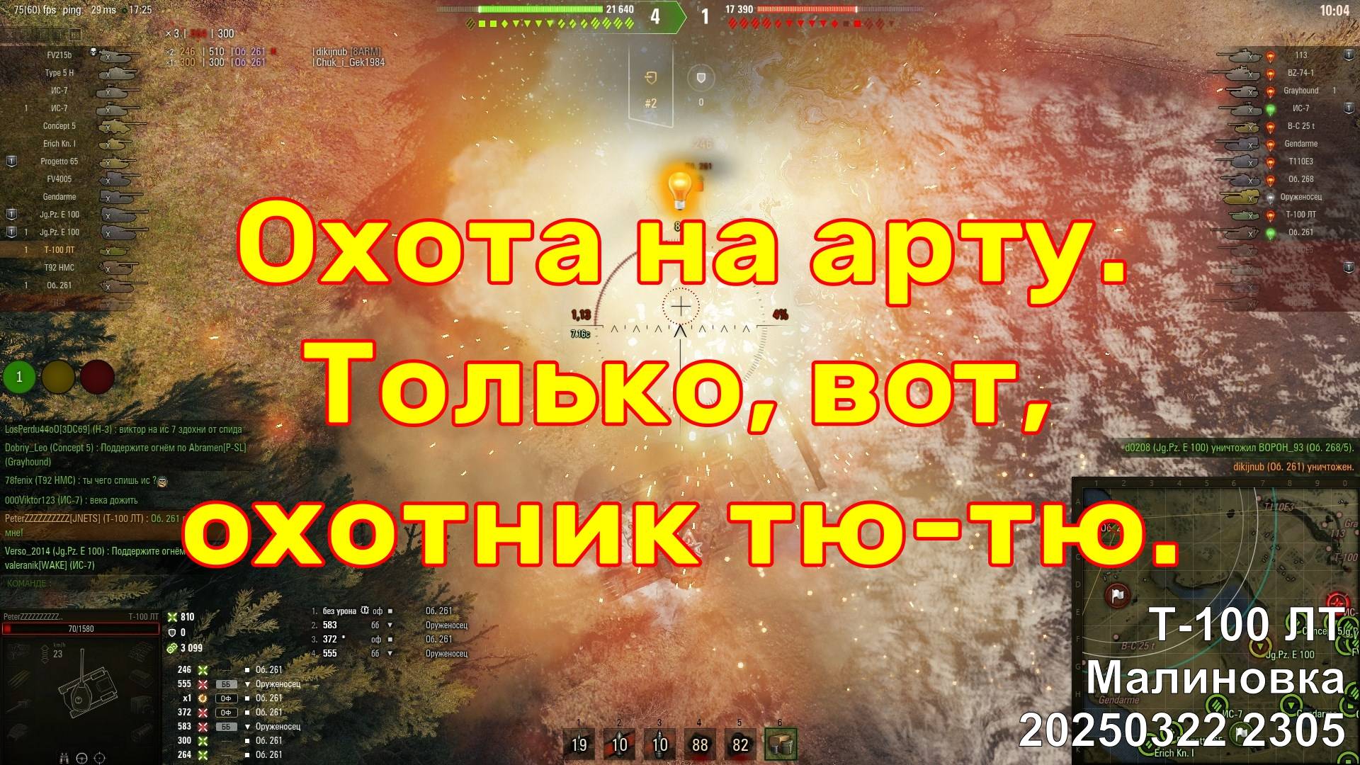 Охота на арту. Только, вот, охотник тю-тю. Т-100 ЛТ. Малиновка. 20250322 2305.