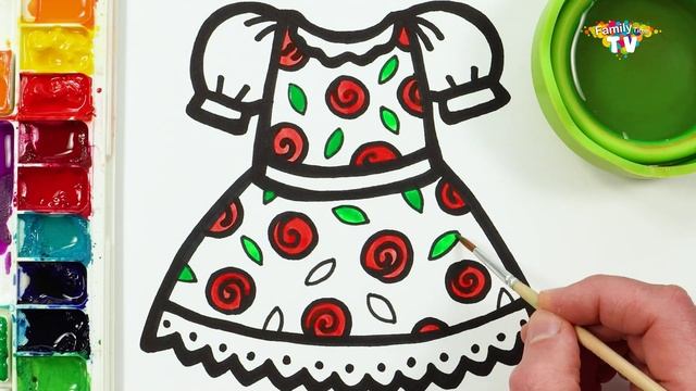 Рисование и раскрашивание платье для детей!