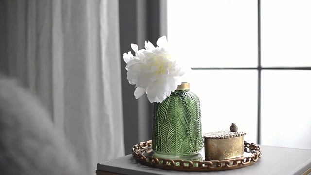 Благодаря своему уникальному дизайну, яркому цвету и золотистому ободку, стеклянная ваза с фактурой из листьев зеленого папоротника придаст привлекательный вид любой комнате. Поставьте изделие на стол в прихожей, каминную полку в гостиной или офисе, чтобы придать интерьеру естественную красоту и блеск.