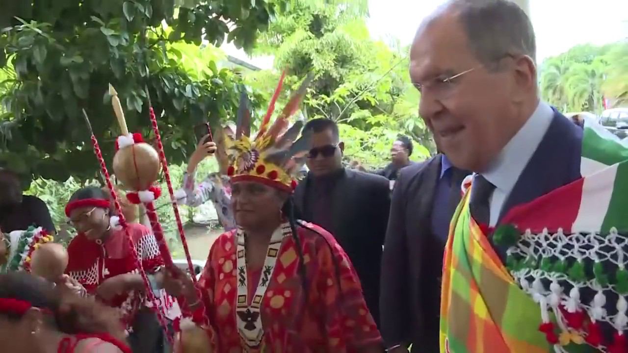 C.Лавров принял участие в традиционном танце в Суринаме,Парамарибо, 27 июля 2019 года
