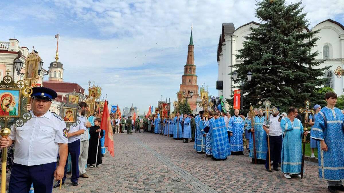 По традиции утром перед крестным ходом в Благовещенском соборе Казанского кремля состоялся молебен. Для верующих этот праздник особенный. Люди выстроились в очередь к Казанской иконе Божией Матери, которую утром доставили из Казанского собора. Для безопасности улицы, по которым прошел крестный ход, заранее перекрыли. Из Благовещенского собора вышли алтарники с хоругвями, за ними — священники. Последней вынесли Казанскую икону Божией Матери, украшенную цветами. Зазвучало молебное пение, и духовенство Татарстанской митрополии вместе с верующими отправились в путь во главе с чтимым образом Богородицы. Под пение акафиста Царице Небесной люди шли, держа в руках флаги с образом Спаса Нерукотворного и иконы Божией Матери. Крестный ход достиг Богородицкого монастыря — места обретения чудотворной иконы. У входа в обитель совершили Параклисис — молебен Пресвятой Богородице. День Казанской иконы Божией Матери считается престольным праздником Казани. Чудотворный образ был явлен в 1579 году. Согласно преданию, Богородица явилась во сне девочке Матроне и указала место, где находилась икона. Ее нашли в земле, на месте пепелища старого дома. Позже здесь возвели Казанский собор и основали Богородицкий монастырь.