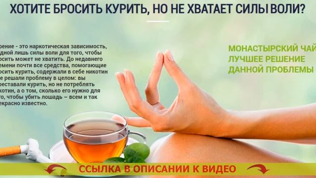 ⤵ ЖМИ НА ССЫЛКУ В КОММЕНТАРИЯХ ⤵ ❕ МОНАСТЫРСКИЙ ЧАЙ ОТ КУРЕНИЯ! БРОСИТЬ КУРИТЬ ЛЕГКО! Лучшее средство от сигарет Монастырский чай – натуральное средство, помогающее всего за 3 недели полностью освободиться от никотиновой зависимости - Без никотиновых пластырей - Без никотиновых жвачек - Без таблеток и БАДов - Без книг и кодировки Каким образом Монастырский чай позволяет бросить курить? Статистика утверждает, всего лишь 3-4% хотящих бросить курить, наконец спасаются от привязанности. Курение — одна из сильнейших зависимостей в мире, сравнимая с зависимостью от наркотиков. Строение организма человека таково, что только немногие смогут бросить курить сигареты. Людской мозг не распознаёт табакокурение как губительную привычку и просит новую и новую порцию никотина. Стопроцентное большинство бросающих курить сами сталкиваются с огромным количеством проблем: - Имеют излишний вес после завершения бросания - Ощущают беспокойность, стабильное желание бросить курить - Сохнут от уныния, назойливых мыслей и паники - 90% бросивших курить принимаются заново. Для борьбы с этими трудностями был собран особенный состав Монастырского чая, приготовленный сознательно для курильщиков. Каким образом работает Монастырский чай? Монастырский чай — это феноменальное средство, помогающее справиться с предпосылкой хотения курить сигареты. Почему? - Чай выводит из организма человека 99,99% никотина в течение 3х недель. Привычка отходит на вполне физиологическом уровне, организм быстро забывает о никотине. - Чай выводит из организма токсины, делая лучше состояние здоровья. Вы больше не захотите вернуться к одышке, противному аромату изо рта, изможденности. - Чай укрепляет и успокаивает психику. Вы не вспомните о стрессе, невольном намерении скурить сигаретку и непрерывной нервозности. Бросила курить последствия для женщин. - Чай унимает излишний голод. Как бросить курить если ничего не помогает. Вы не будете хотеть съесть избыточного, потому что Ваш организм будет в спокойном и расслабленном состоянии. Скачать бесплатно как бросить курить. Какие конкретно изменения свершатся в Вашем организме спустя три недели? - Вы совсем почистите Ваш организм от смол, шлаков и никотина, сосредоточившихся во внутренних органах и костном мозге. Когда надо бросать курить. - Ваши лёгкие смогут прорабатывать на 80% больше воздуха, благодаря чему усилится работоспособность. Бросить курить краснодар. - Вы на сто процентов отделаетесь от нервности, стабильного стремления пыхнуть и отвлечься. Как долго выводится никотин из организма. - Вы станете выглядеть наилучшим образом, зародится охота движения и физических тренировок. Через сколько перестанет хотеться курить. Вы будете чувствовать себя на 5-10 лет молодее. Улучшение здоровья