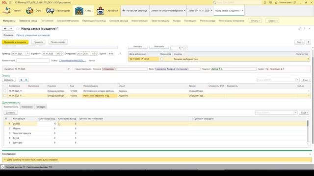 demo2_2. Выполнение наряда, создание второго этапа заказа