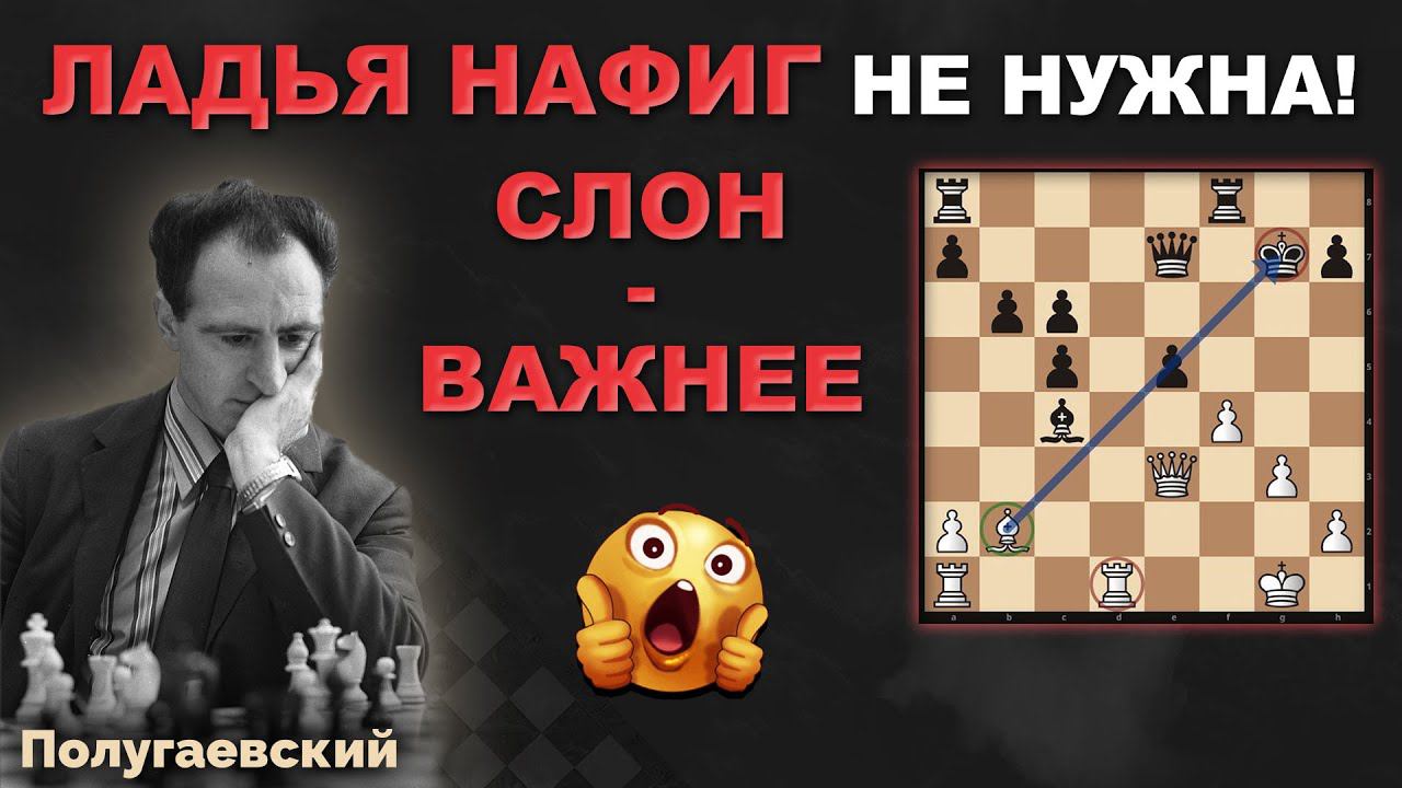Полугаевский находит прекрасное решение для взаимодействия ферзя и слона по диагонали а1-h8 и уничтожения защиты вражеского короля Приятного просмотра) Поддержать проект: https://www.donationalerts.com/r/chess_point_com Все ссылки в одном месте: https://linktr.ee/chesspoint Шахматная онлайн-школа Chess-Point (Россия) https://chess-point.ru/ Шахматная онлайн-школа Chess-Point (Болгария) https://chess-point.com/ Вступить в клуб на lichess.org, чтобы участвовать в турнирах на деньги! https://lichess.org/team/chess_point_com Авторские книги: ЛитРес: (RUS) https://www.litres.ru/author/ivan-kozhevnikov-32245081/ Ридеро: (RUS) https://ridero.ru/author/kozhevnikov_ivan_ez-l9/ Amazon: (ENG) https://www.amazon.com/stores/Ivan-Kozhevnikov/author/B0BGSZSG9M?ref=ap_rdr&store_ref=ap_rdr&isDramIntegrated=true&shoppingPortalEnabled=true По всем вопросам и предложениям: Почта: ivankozhevnikovltd@gmail.com Видеомонтаж от Захаровой Ксении Контакты: телеграмм @ta_ksesh Обо мне: Привет, меня зовут Кожевников Иван, являюсь профессиональным шахматным тренером, бывшим профессиональным шахматным игроком, основателем шахматных школ в России и Европе, автором шахматных книг "Сборник тактических приемов" на русском, английском и немецком языках. На этом канале делюсь своим большим опытом, как профессиональный игрок, играющих на различных чемпионатах и в международных турнирах, как тренер с большим опытом. Мне очень повезло, в то время как, я был в качестве спортсмена, меня тренировало более 15 индивидуальных тренеров. От каждого тренера я постарался взять самое хорошее и создать свою лучшую версию!