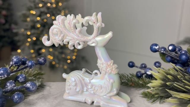 Ёлочная игрушка СНЕЖНЫЙ ОЛЕНЬ лежащий, акрил, белый, 9 см, T3624-1