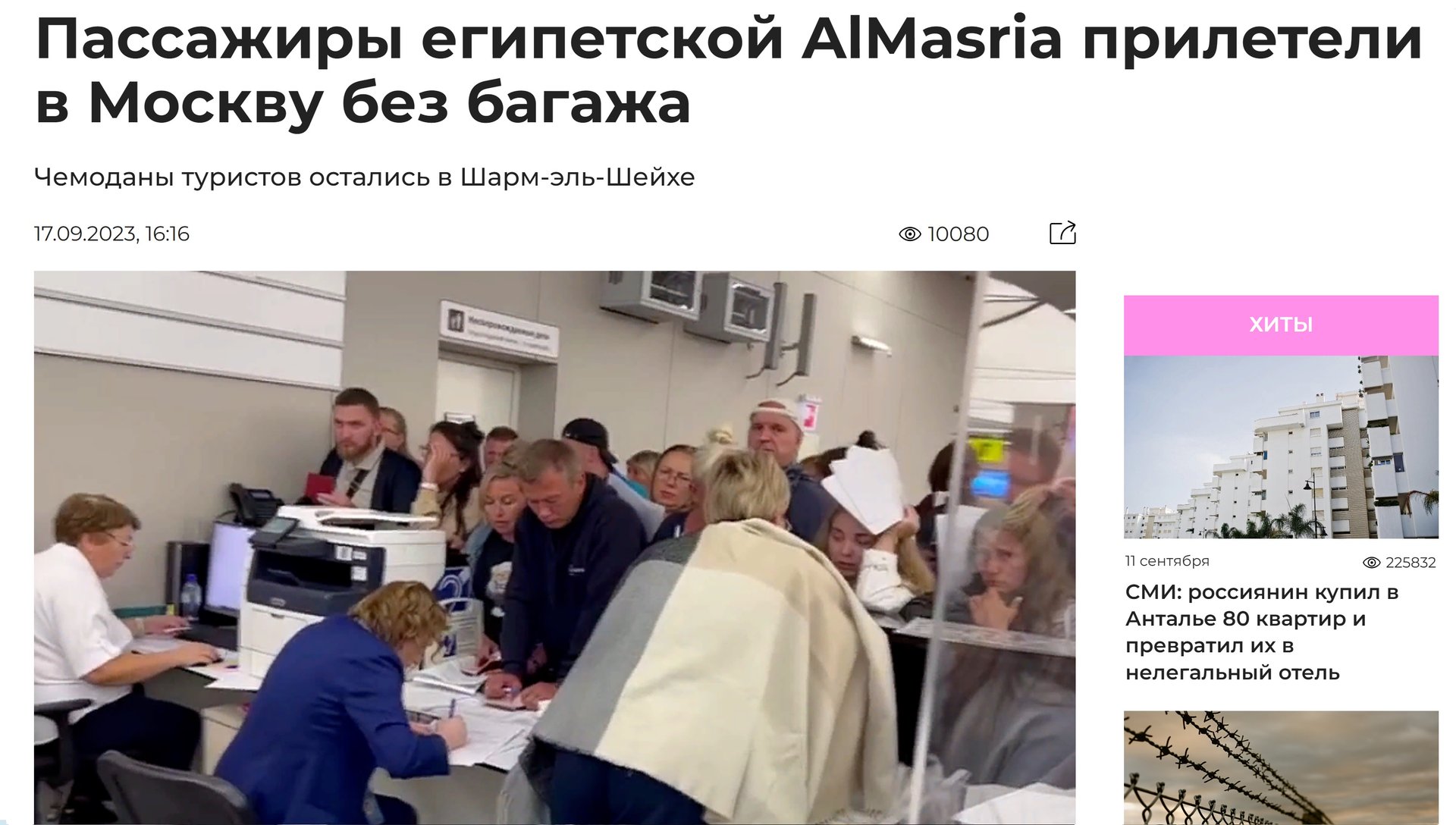 Новости туризма 17/09/2023 Пассажиры египетской AlMasria прилетели в Москву без багажа #туризм
