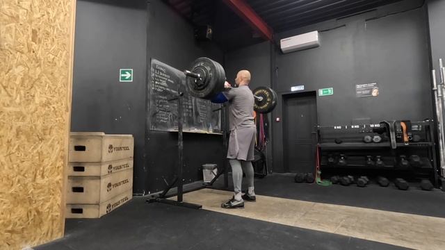 Техника Каждые 2 минуты, 10 подходов 1 рывок в стойку+1 с виса в сед Примерно 80-90% от актуального 1ПМ, для уверенной работы все раунды. * 60 (кг) Сила Чередуя каждые 2,5 минуты, 15 минут 11 приседаний со штангой на груди Максимум строгих подтягивания Приседания без долгих пауз, быстро, технично. Вес - прошлой недели, если на прошлой недели справились все подходы. Подтягивания - заканчиваем, когда нужно сделать паузу внизу. Если 15+ до подбородка легко - делаем до груди. * 87 (кг) 36 (повторения) Подтягивания только 1 подход 12 без остановки Комплекс 12AMRAP 7 подносов ног 4/4 взятие с виса+швунг гантели 25 двойных Пробуем улучшить результат прошлой недели. * 375 (повторения) 9р+15