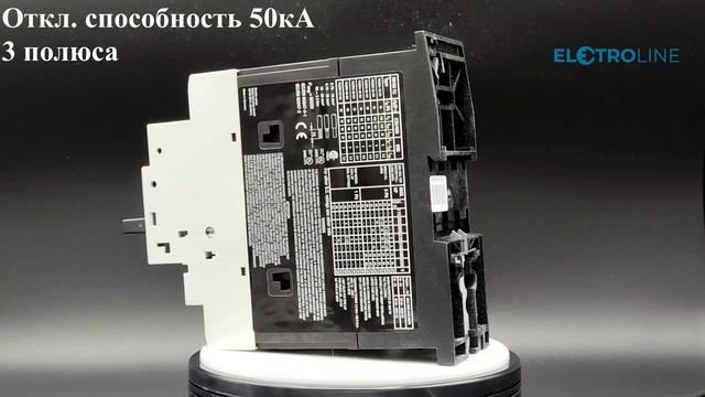 Автоматический выключатель защиты двигателя производства ИТОН (EATON) с номинальным током 63А. Состоит из 3-х полюсов, с отключающей способностью 50кА. Диапазон уставки 58...63А. Подробнее смотрите в нашем интернет магазине по ссылке: https://electroline.ru/product/eaton-pkzm4-63-ea-m190024.html