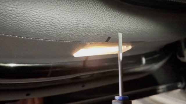 The video shows the installation process of the welcome light on the 2015 Maserati Ghibli.