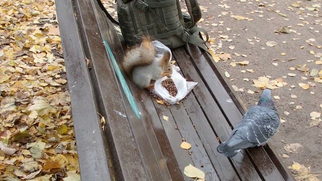 Белка, голубь и орехи