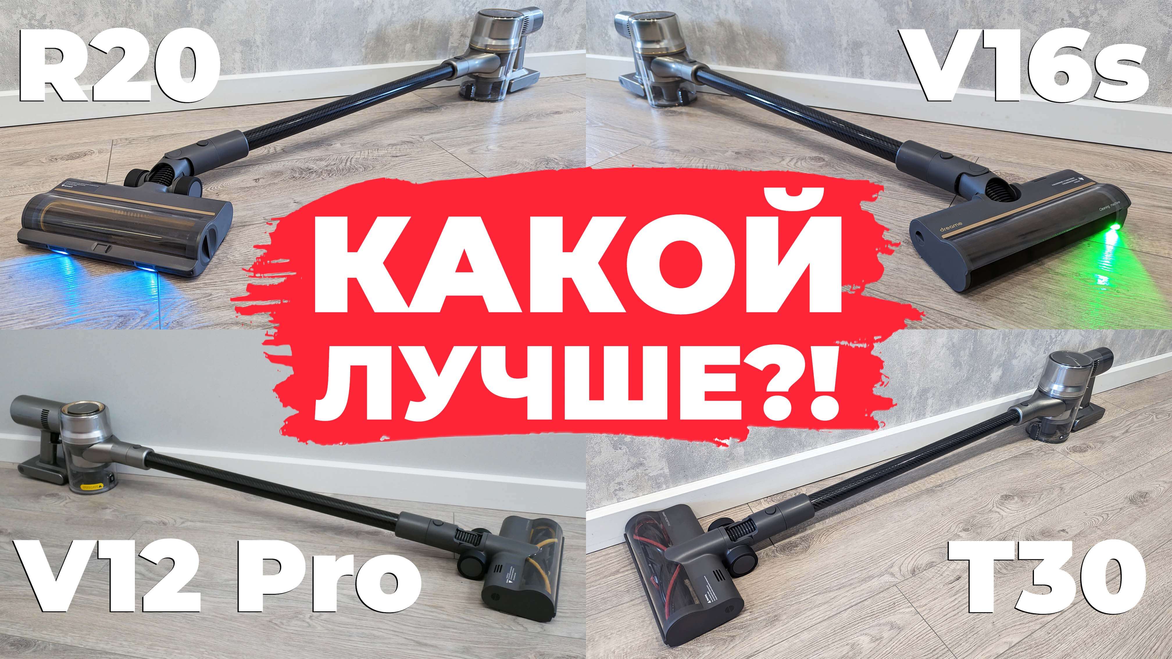 Сравнение вертикальных пылесосов Dreame V12 Pro, T30, R20 и V16s? Какой лучше выбрать?!✅