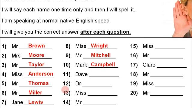 English listening and spelling quiz - People's names