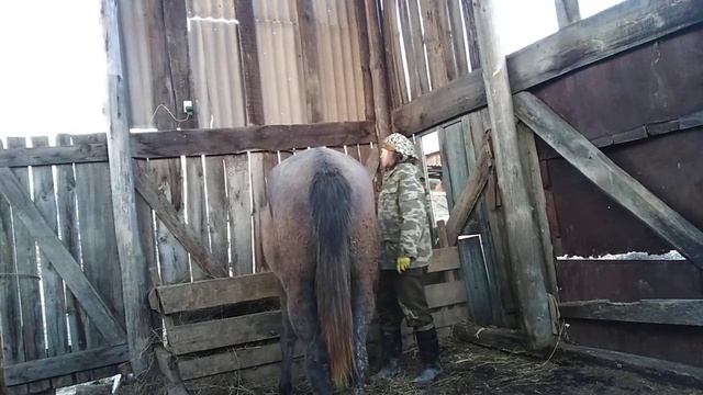В апреле все лошади похожи на старые пыльные ковры, линька идёт, поэтому чтобы быстрее избавиться от летающей повсюду шерсти, лошадь нужно периодически чистить) Сегодня после вечерней дачи сена и я решила почистить Заветную.