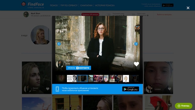 Девушка: https://vk.com/id236401176 Видео с ней: https://youtu.be/ZBGrMUBmcMQ FindFace.ru NTechLab.com FindFace.pro