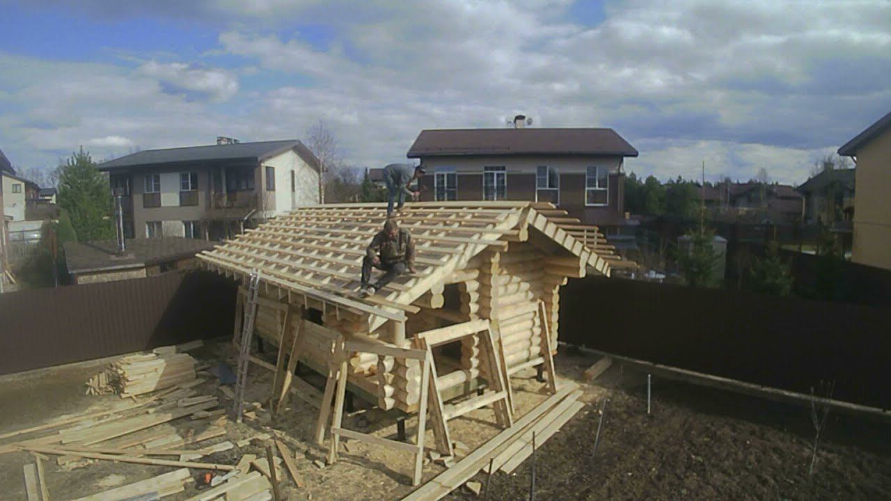Сборка сруба бани из бревна 240мм под постоянные стропила компанией 100срубов в апреле 2021 года