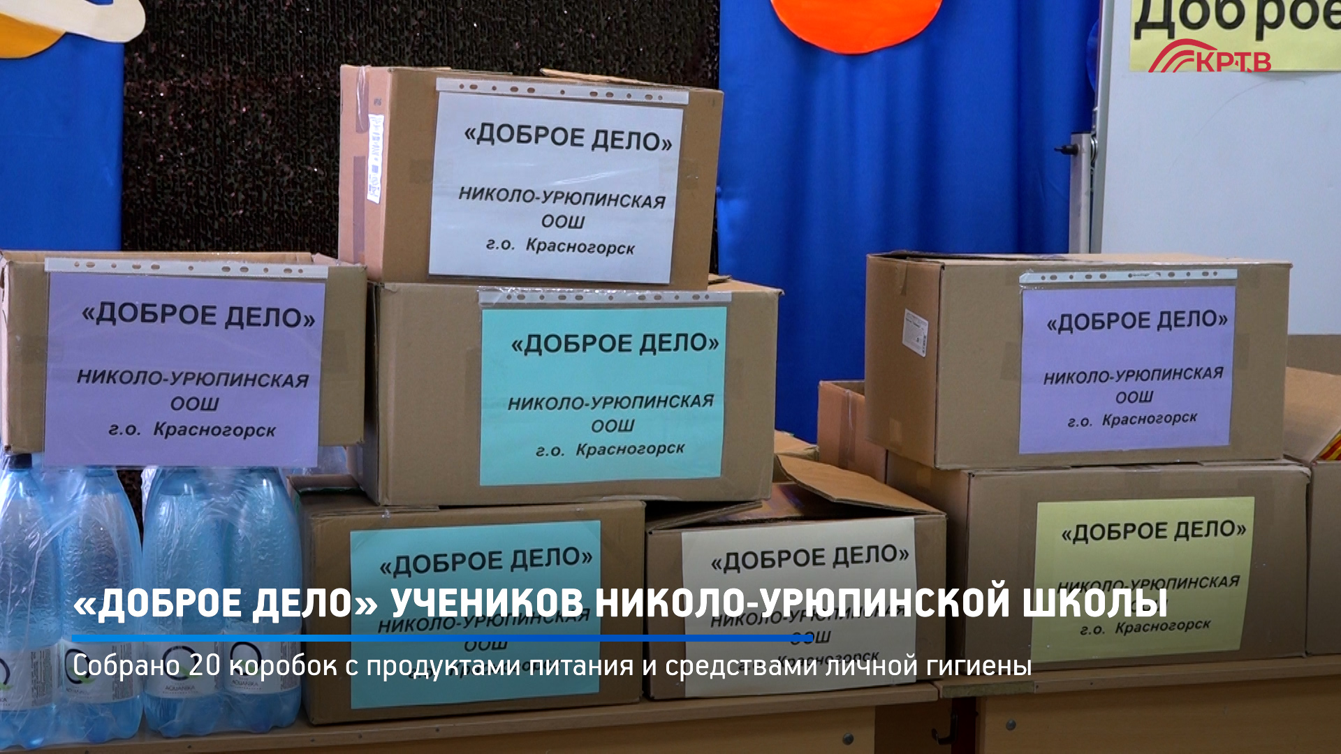 В Московской области по инициативе школьников стартовал проект «Доброе дело. Ученики средних образовательных учреждений, педагоги и родители собирают гуманитарную помощь для жителей Донбасса. Красногорцы в стороне не остались. В Николо-Урюпинской школе готовы к отправке более 20 коробок с продуктами питания и другими необходимыми вещами.