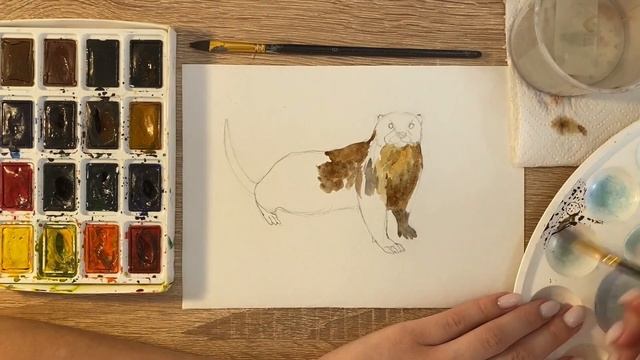 Как нарисовать выдру карандашом и акварелью начинающим | Рисунок для детей