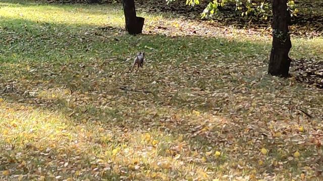 Милая, забавная собачка гуляет в парке.