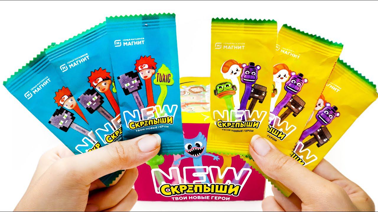 Сегодня проведем последний (ну или не совсем) эксперимент с пакетиками акции Скрепыши Нью в Магнит! Откроем синие (ну или зеленые) пакетики Скрепыши 4, а потом заодно желтые и розовые и проверим, каких скрепышей можно найти в них и есть ли тайна пакетиков разных цветов!