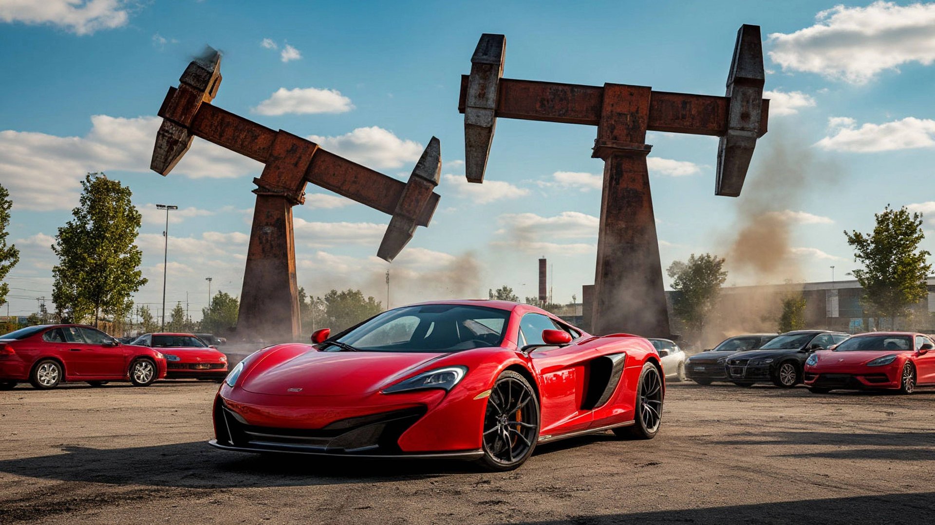 Мультики про машинки. Спортивные машину прыгают с рампы на крутящиеся молотки.