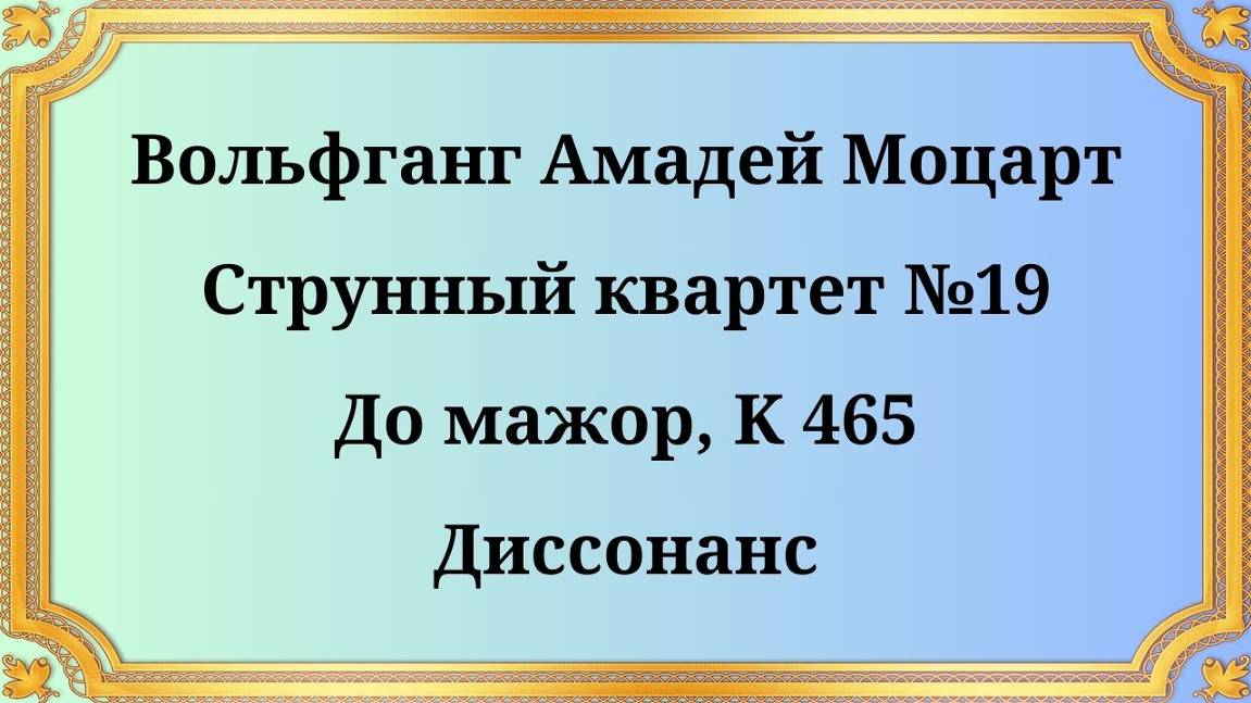 Вольфганг Амадей Моцарт Струнный квартет №19 До мажор, K 465 Диссонанс
