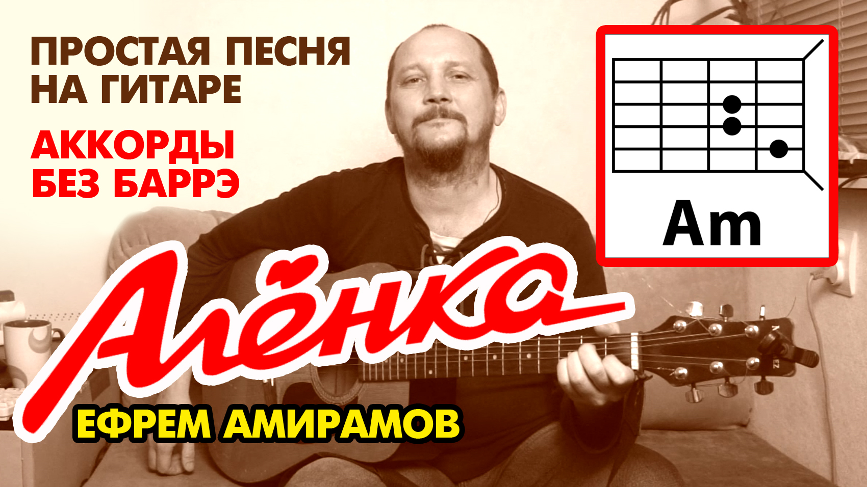 АЛЁНКА - ЕФРЕМ АМИРАМОВ (ПРОСТАЯ ПЕСНЯ НА ГИТАРЕ) АККОРДЫ БЕЗ БАРРЭ (РАЗБОР - КАК ИГРАТЬ) COVER