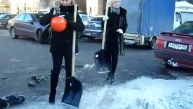 На шпильках и в мини – и на уборку снега!