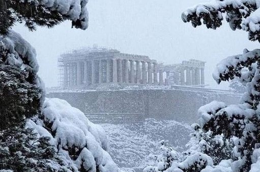 Афины - заснеженный Акрополь и транспортный коллапс