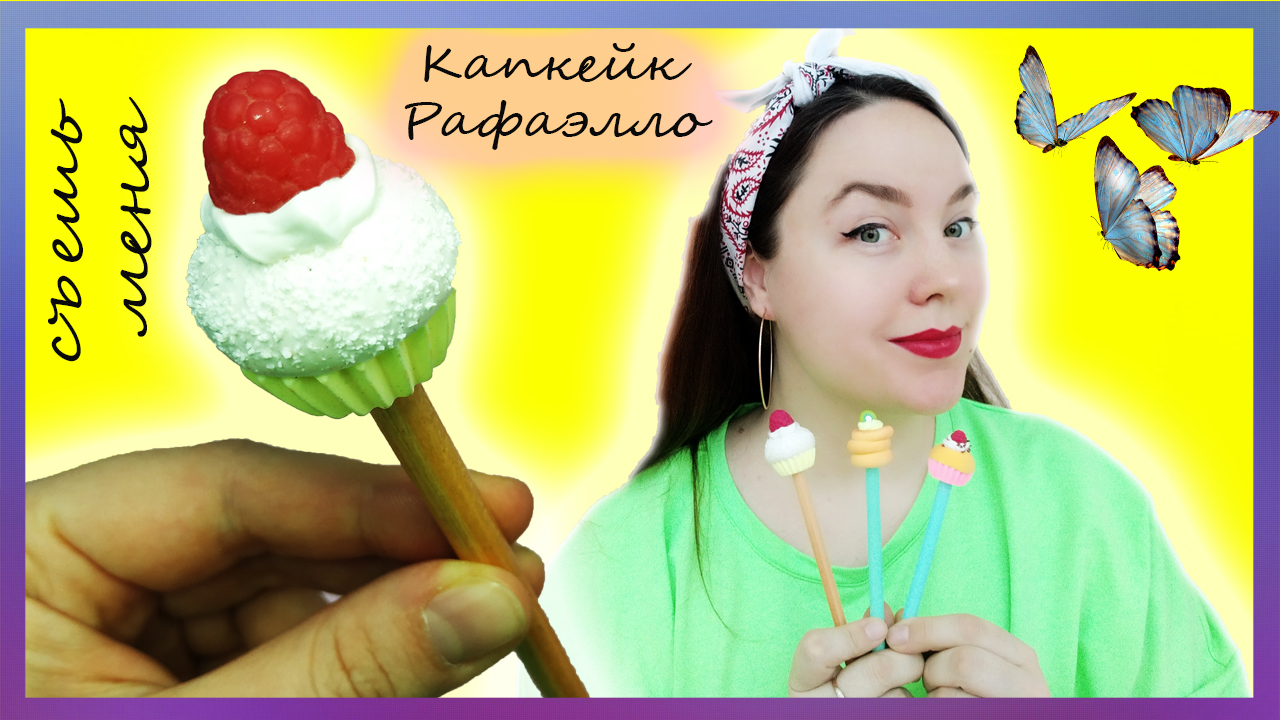 ❤️ Декорируем карандаш капкейком "Рафаэлло" из полимерной глины ❤️