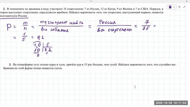 2910 вероятность