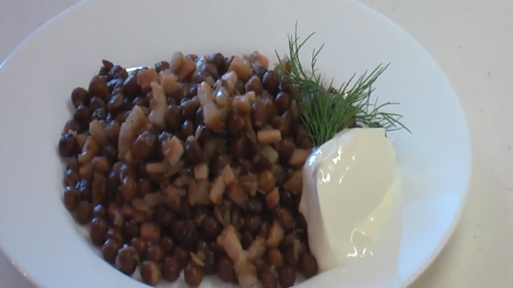 Серый горох с копченой грудинкой и луком видео рецепт