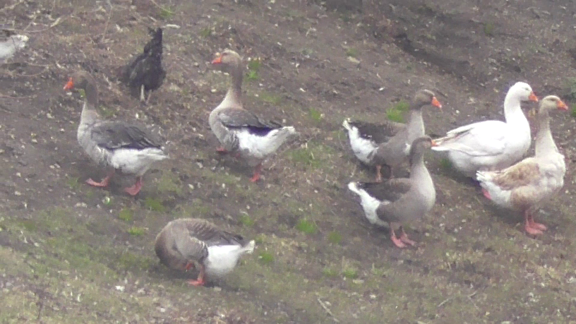 Гуси на берегу. Гуси далеко находятся от меня