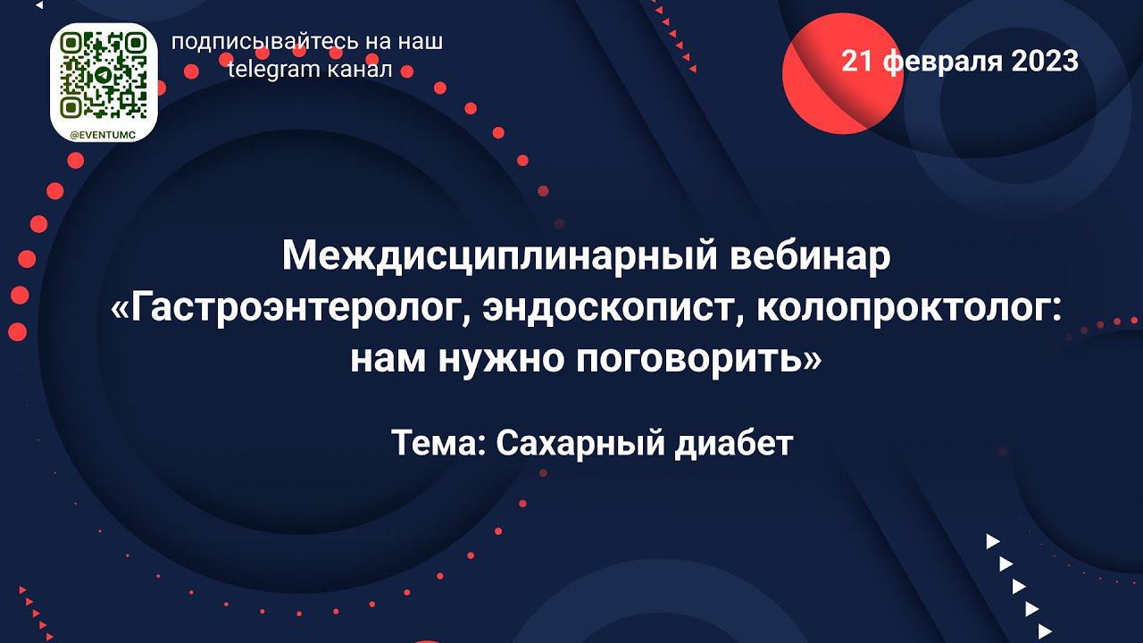 Междисциплинарный вебинар "Гастроэнтеролог, эндоскопист, колопроктолог: на нужно поговорить" Тема: сахарный диабет