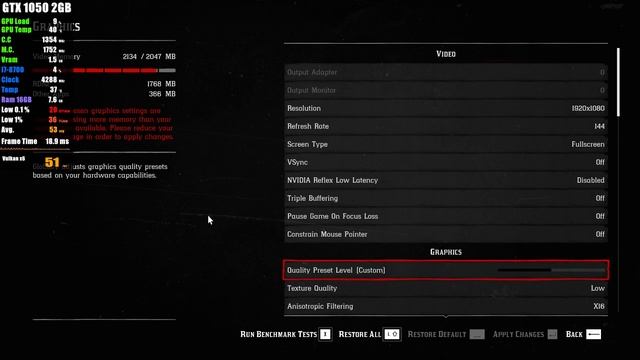 GTX 1050 2GB | Red Dead Redemption 2 FSR 2.0 - 1080p, Quality, Balanced, Performance