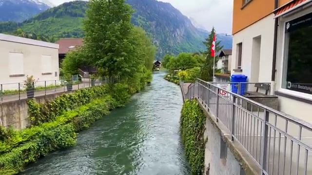 Дождливая прогулка по Интерлакену, Швейцария 4k Самый красивый город Швейцарии, Дождевая атмосфера!