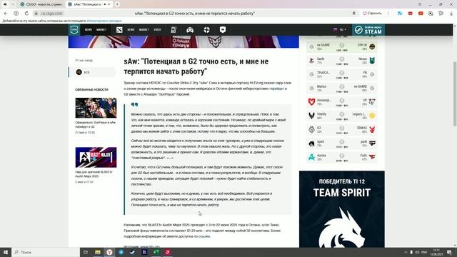 News Overview Counter Strike 2: sAw - "Потенциал у G2 точно есть"