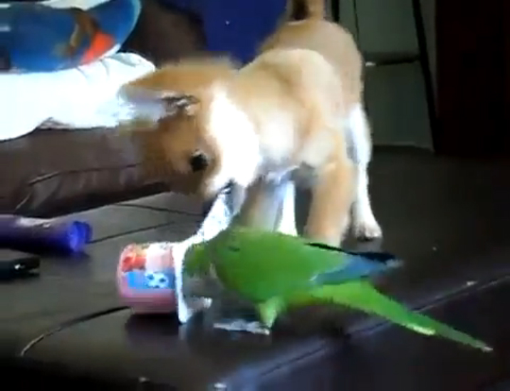 Эти мелкие даже с попугаем справиться не могут :)))