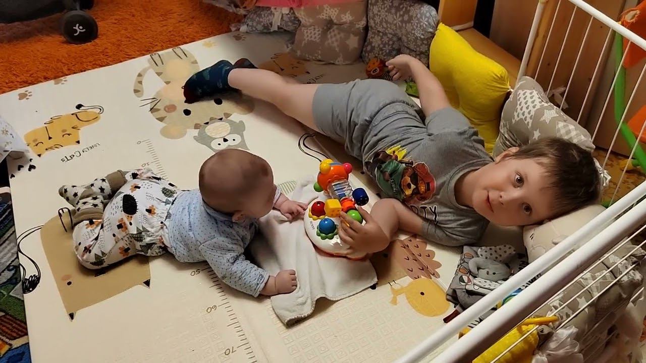 Лёва играет с Мирончиком