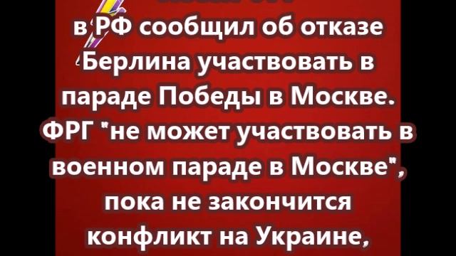 Посол ФРГ в РФ сообщил об отказе Берлина участвовать в параде Победы в Москве