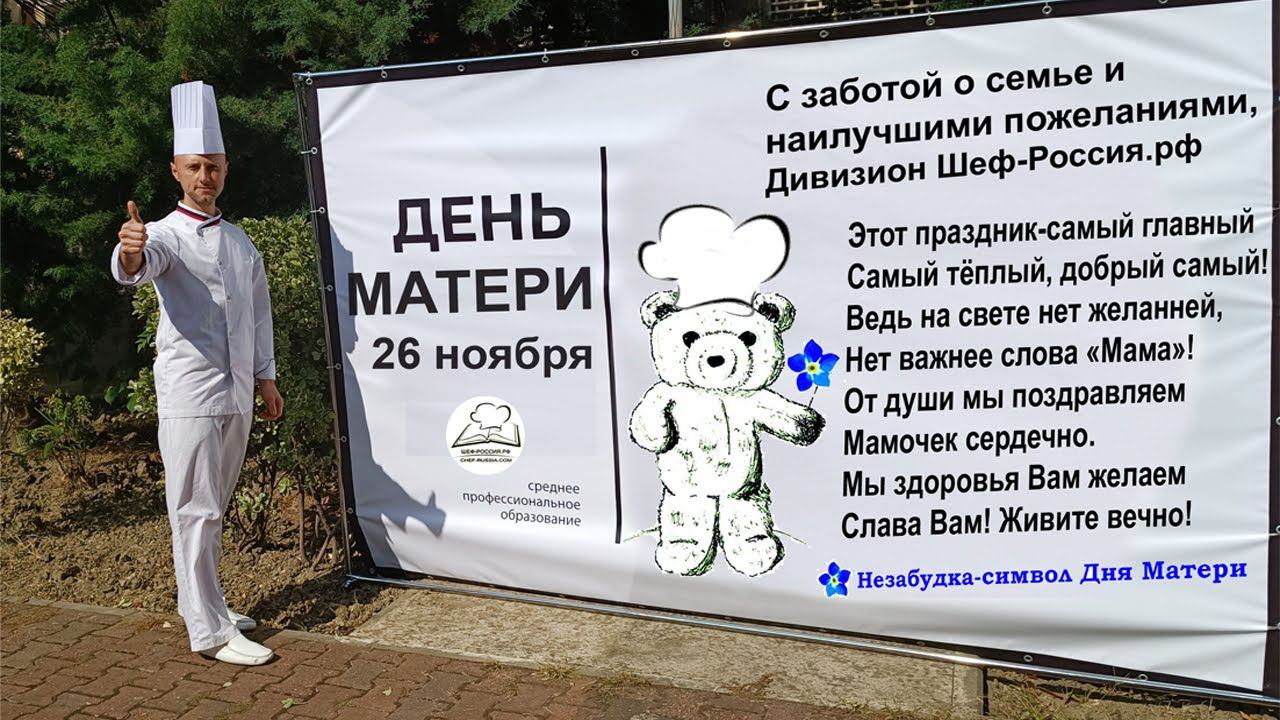 26 ноября в Росси отмечается День Матери С заботой о семье и наилучшими пожеланиями, Дивизион Шеф-Россия.рф Этот праздник-самый главный Самый тёплый, добрый самый! Ведь на свете нет желанней, Нет важнее слова «Мама»! От души мы поздравляем Мамочек сердечно. Мы здоровья Вам желаем Слава Вам! Живите вечно! День матери добрый и нежный праздник олицетворяет величие духовной силы, святости материнства как бесценного источника жизни и одного из высочайших качеств женственности. Желаю всем мамам крепкого здоровья и счастья, а каждой семье - мира и взаимопонимания. Материнская любовь — это мир. Ее не нужно завоевывать, ее не нужно заслуживать. Её нужно беречь и приумножать. Пусть любовь и благодарность детей станут для вас лучшей наградой. Марков Петр Борисович Учредитель социального проекта Директор Дивизиона Шеф-Россия.рф Сегодня в день матери мы поделимся идеей красивого торта в виде сердца, из меренги, заварного теста на эклеры, профитроли. При этом вы можете готовить и несладкие варианты в качестве закуски. Ингредиенты: сливочное масло — 125 г пшеничная мука — 1 стакан яйца куриные — 4 шт. вода — 1 стакан соль — 2 щепотки Способ приготовления: Налейте в сотейник воду, добавьте сливочное масло и соль. Поставьте на средний огонь и доведите до кипения, помешивая. Постепенно добавьте просеянную муку, помешивая массу деревянной лопаткой. Должно получиться однородное тесто. Снимите сотейник с огня, подождите 2–3 минуты и начинайте добавлять яйца. Добавляйте яйца в тесто по одному и тщательно перемешивайте лопаткой. Когда полностью вымесите тесто с одним яйцом, вводите следующее. Тесто должно стать гладким и блестящим. Застелите противень бумагой для выпечки, с помощью кондитерского мешка с насадкой отсадите на противень пирожные. Выпекайте в предварительно разогретой до 200 °С духовке 20–30 минут в зависимости от мощности вашей духовки и размера пирожных. Затем слегка приоткройте дверцу и оставьте пирожные в духовке еще на 5 минут. На заметку Кипятите воду со сливочным маслом до тех пор, пока масло не перестанет плавать на поверхности воды. Чтобы тесто не подгорело, варите его в течение 2 минут, быстро помешивая. Чтобы яйца не свернулись, температура теста должна быть 60 °С. Если у вас нет термометра, просто потрогайте тесто рукой, оно не должно быть слишком горячим. Количество яиц зависит от их размера. Вам может понадобиться чуть больше или меньше. Когда тесто станет однородным и тягучим, можно больше не добавлять яйца. Какие виды меренги бывают Французская Белок — 100 г Сахар — 200 г Взбиваем в чаше миксера. Итальянская Белок — 100 г Сахар — 200 г Вода — 100 г Варим сироп до 121° С. Далее вводим его во взбиваемые белки. Швейцарская Белок — 100 г Сахар — 200 г Нагреваем сахар и белки на водяной бане до 50-75° С. Взбиваем в чаше миксера. Можно обратить внимание, что состав практически идентичен, меняются только технологии приготовления. Начнём с того, что существует базовое правило, касаемо ингредиентов. На каждую часть белка используется две части сахара, как в нашем примере. Но, пропорции можно менять по своему желанию. November 26 is Mother's Day in Russia With care for the family and best wishes, Division Chef-Russia.rf This holiday is the most important The warmest, kindest! After all, there is nothing more desirable in the world, There is nothing more important than the word “Mom”! We sincerely congratulate you Mommies cordially. We wish you good health Glory to you! Live forever! Mother's Day, a kind and gentle holiday, personifies the greatness 