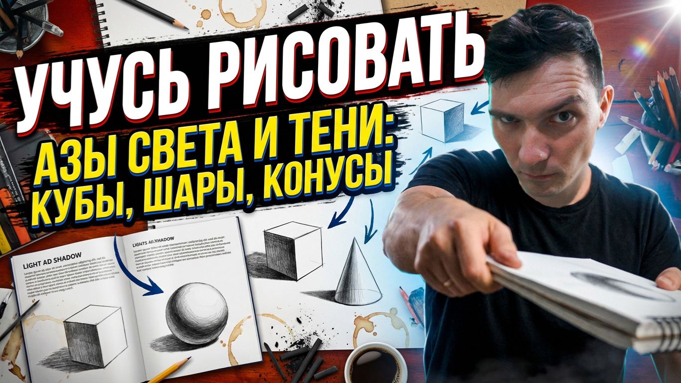 Учусь рисовать по книжке 2. Азы свет тень кубы шары и конусы